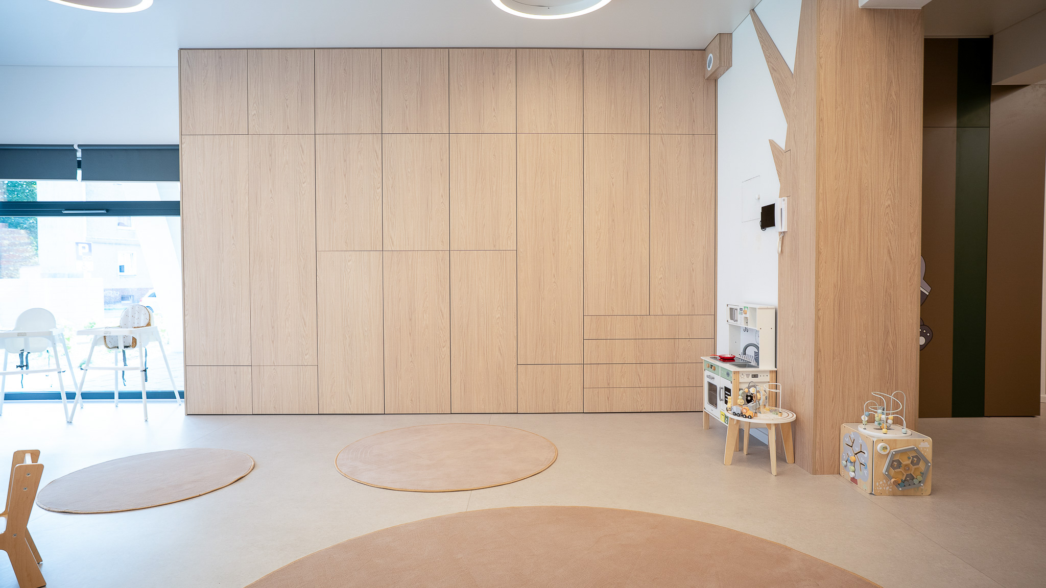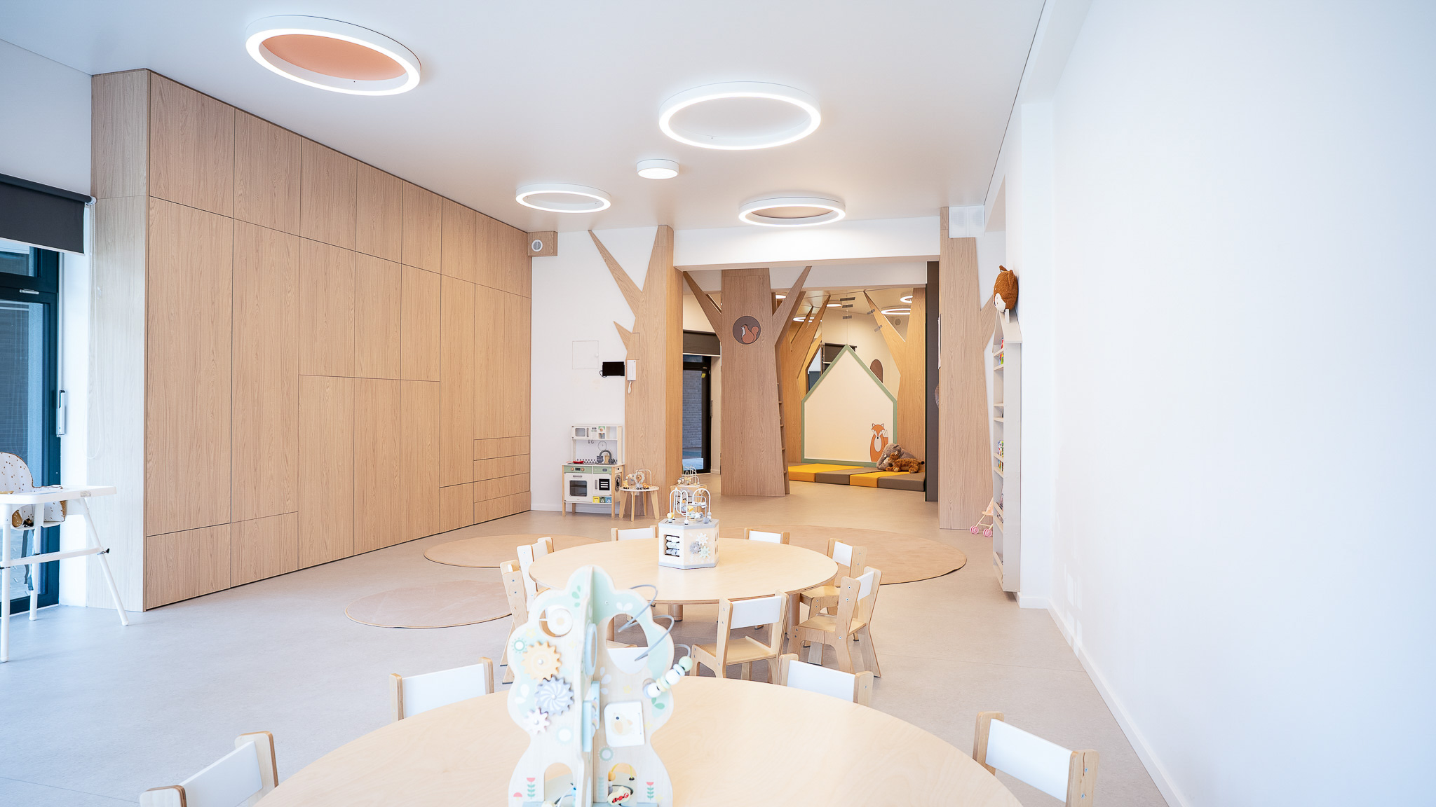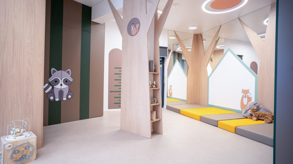 W trosce o rozwój najmłodszych dzieci zaprojektowano przestrzenie do zabawy i wypoczynku. Stworzone zostały miejsca inspirujące do aktywności fizycznej, nauki, zabawy i wypoczynku.